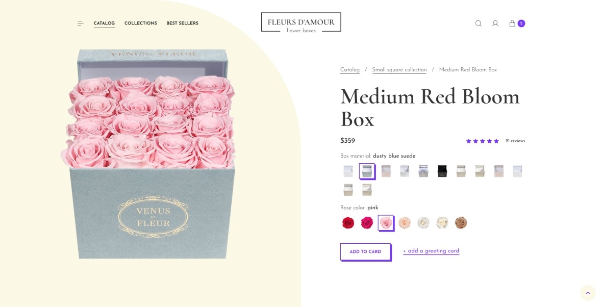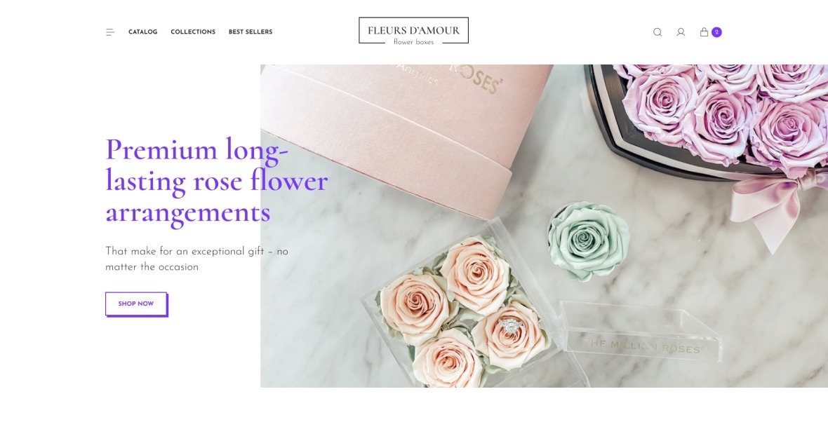 Fleur Damour is an online store selling roses in boxes. The customer's request was a modern, minimalistic but at the same time bright design. We created a custom website design that was focused on delivering a great user experience and increasing sales