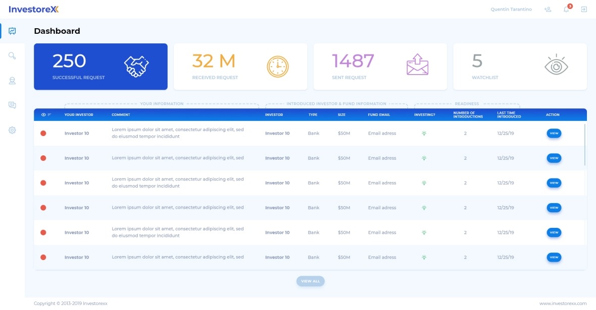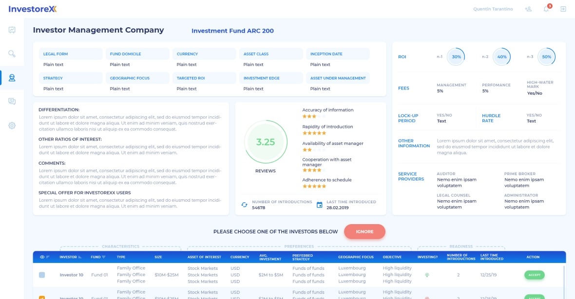 Investorexx - search engine for investment managers, which contains the information database of investors with various exchange options, etc.. The task was to make an understandable and convenient design of a personal account.