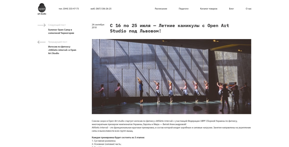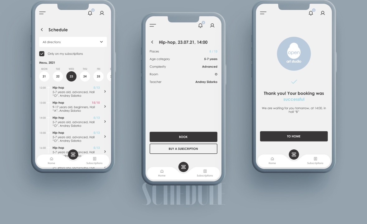 Open Art Studio is a contemporary art school for children. The design of the landing page and mobile application for visitors was developed. You can view directions, manage memberships, and sign up for classes.