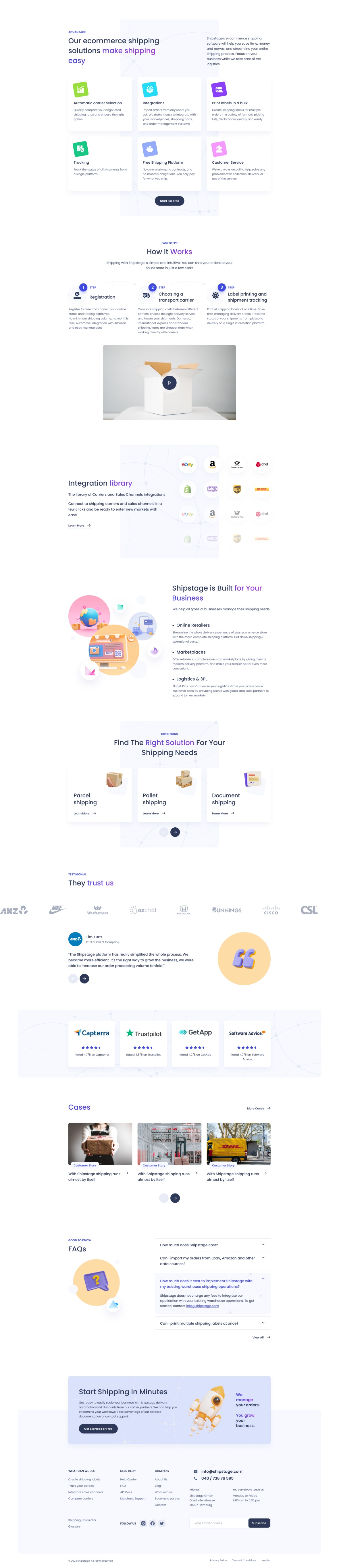 Shipstage is a complete solution for parcel, letter and pallet shipping online stores with the best service providers. The main goal of developing a new site is to attract new users to the free service. The end result was a website that not only looks great but also effectively to increase awareness of their work.